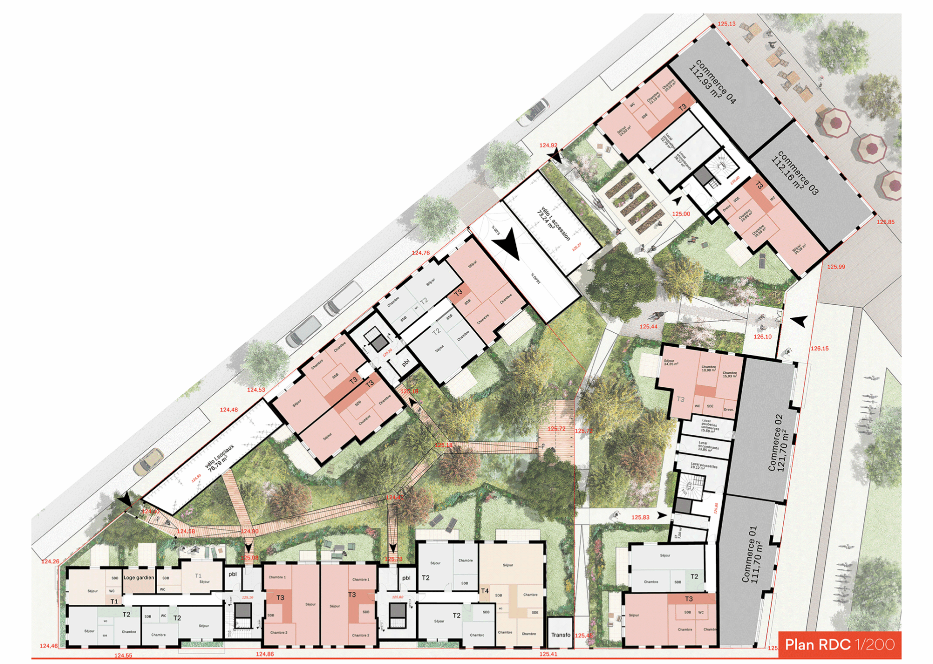 Toits terrasse Hôtel et logements – Le projet végétal se décline depuis le terrain naturel jusqu’aux toitures en développant un système de gradins qui permet d’étirer verticalement la trame végétale. Cette configuration offre aux riverains le spectacle d’une nature luxuriante et spectaculaire et s’inspire des jardins suspendus de Babylone.