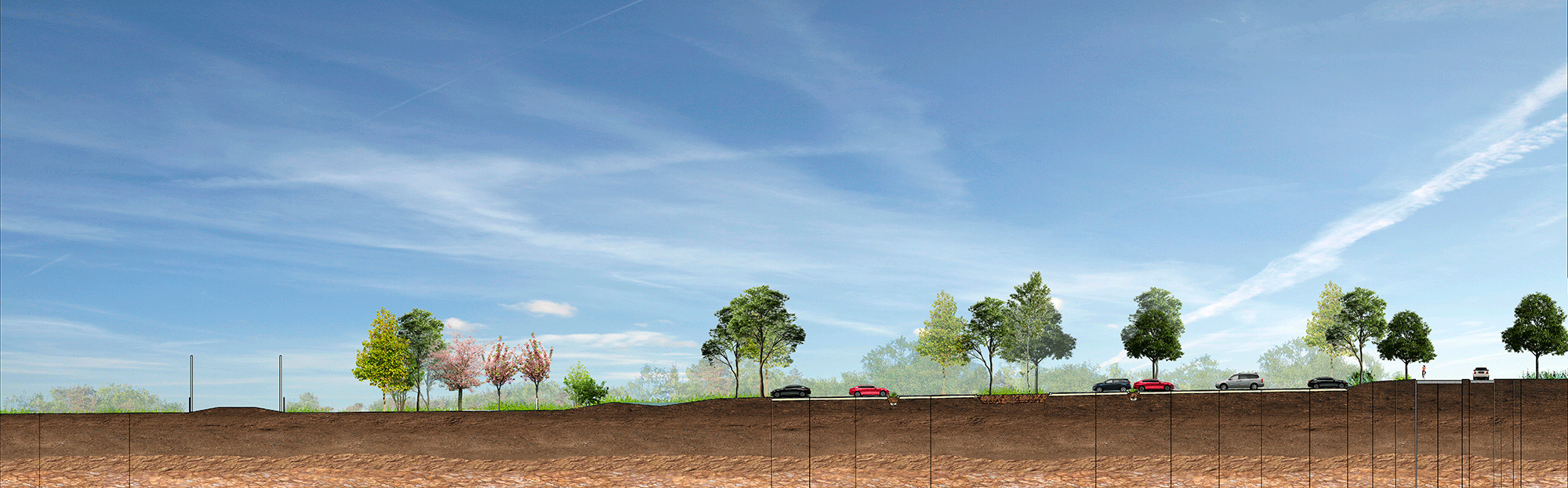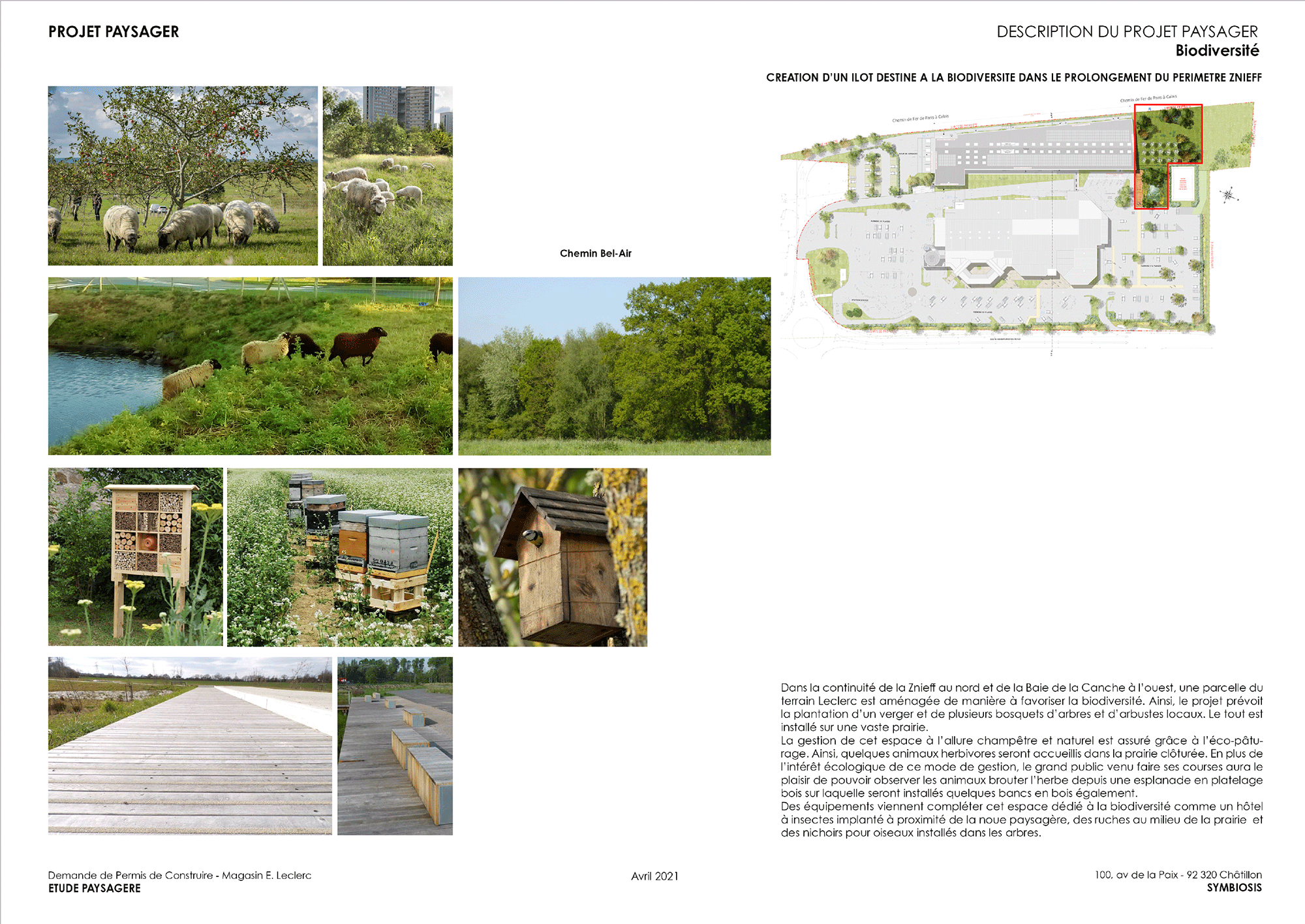 Extention d’un site commercial en limite d’espace protégé et d’une ZNIEFF – Les aménagements proposés s’appuient sur une trame végétale dense et diversifiée indispensable pour évoluer dans un environnement de qualité, soucieux de biodiversité. Les masses plantées structurent l’espace au-delà des limites de propriétés et assurent des continuités visuelles et physiques entre les espaces privés et publics. Le projet paysager s’attache à renforcer la trame verte du site pour travailler une insertion en douceur.