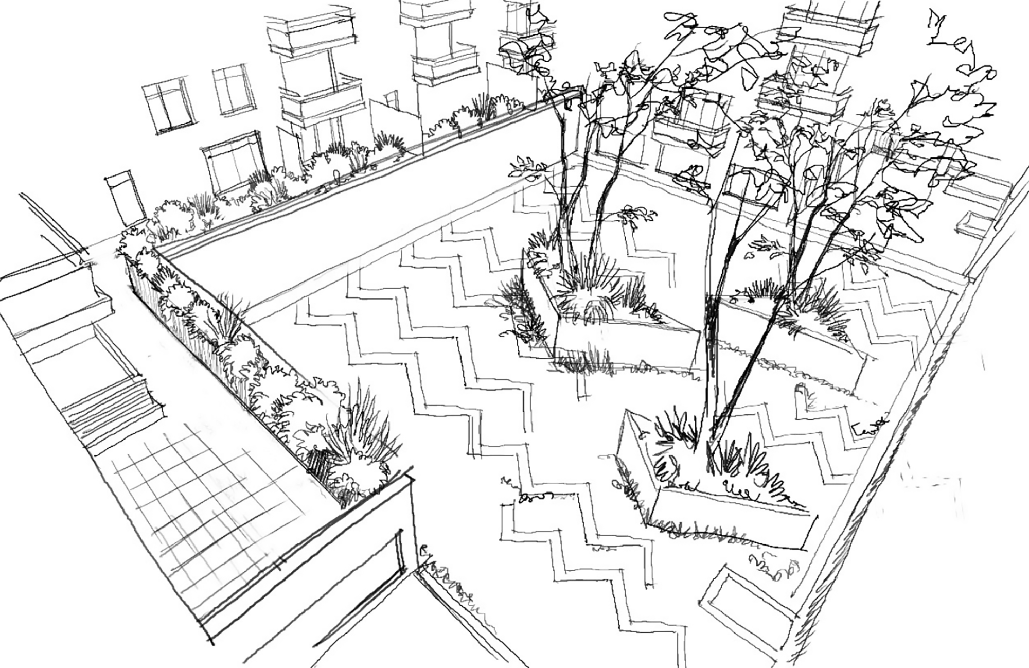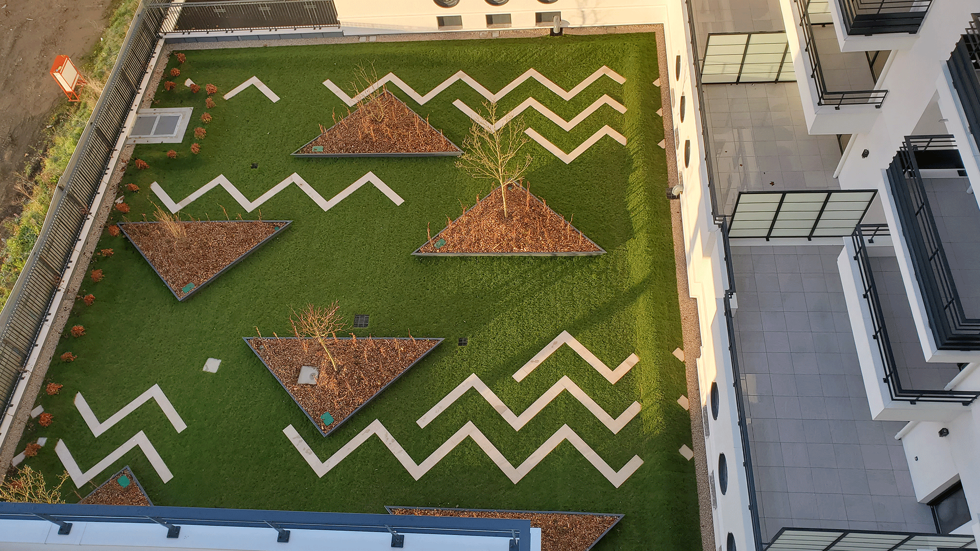 Toits terrasse Hôtel et logements – Le projet végétal se décline depuis le terrain naturel jusqu’aux toitures en développant un système de gradins qui permet d’étirer verticalement la trame végétale. Cette configuration offre aux riverains le spectacle d’une nature luxuriante et spectaculaire et s’inspire des jardins suspendus de Babylone.