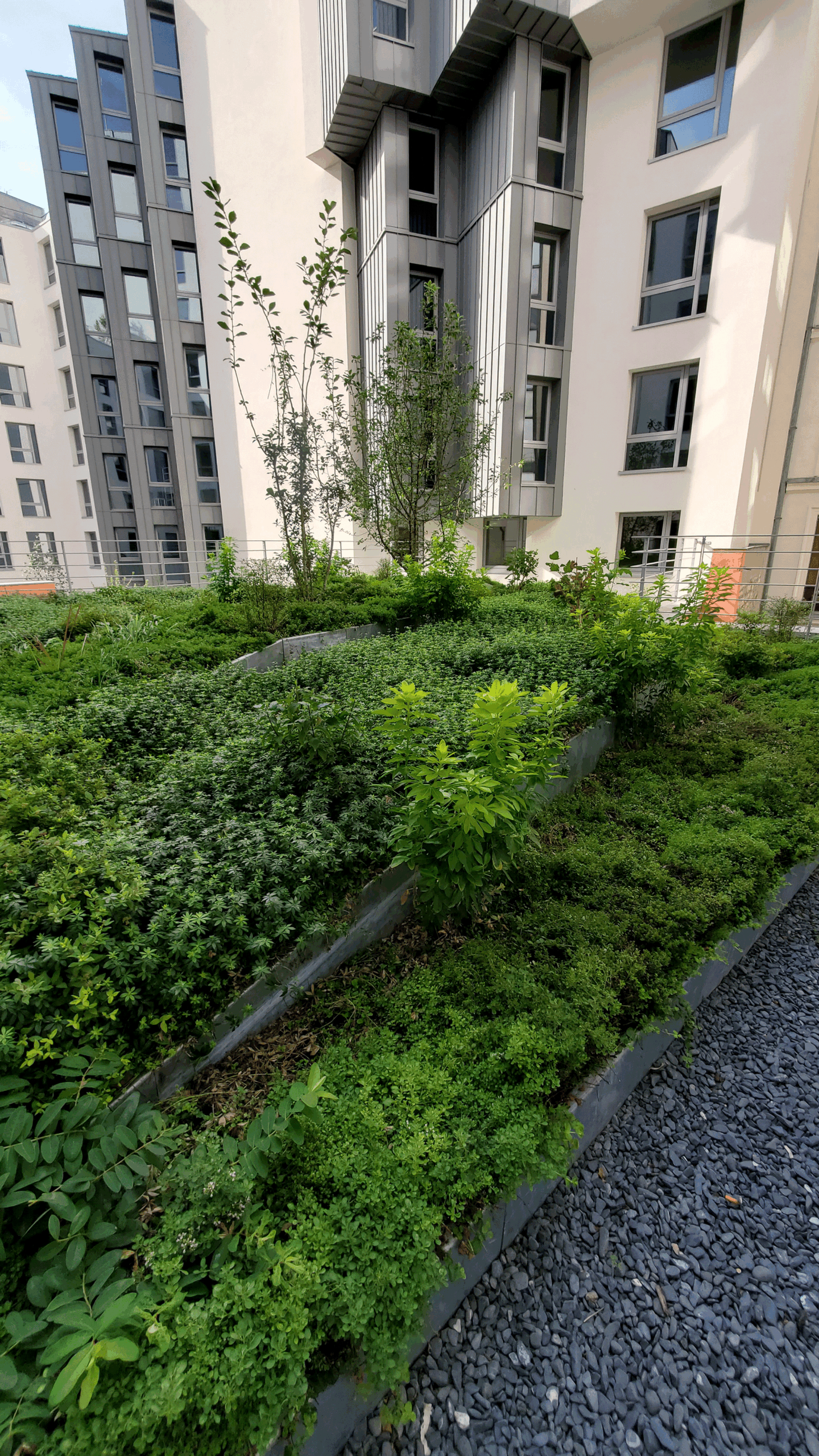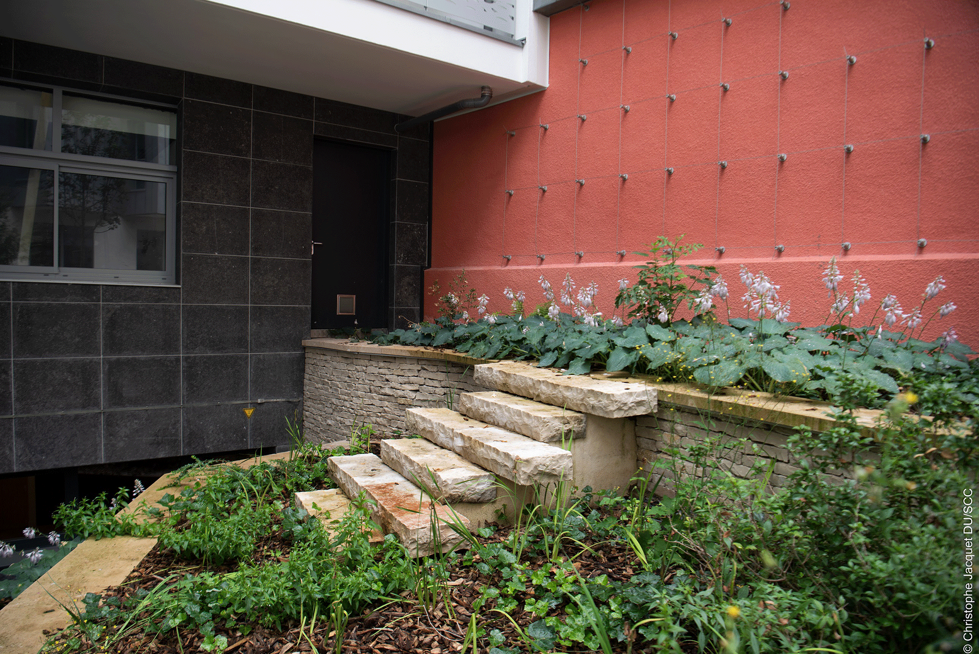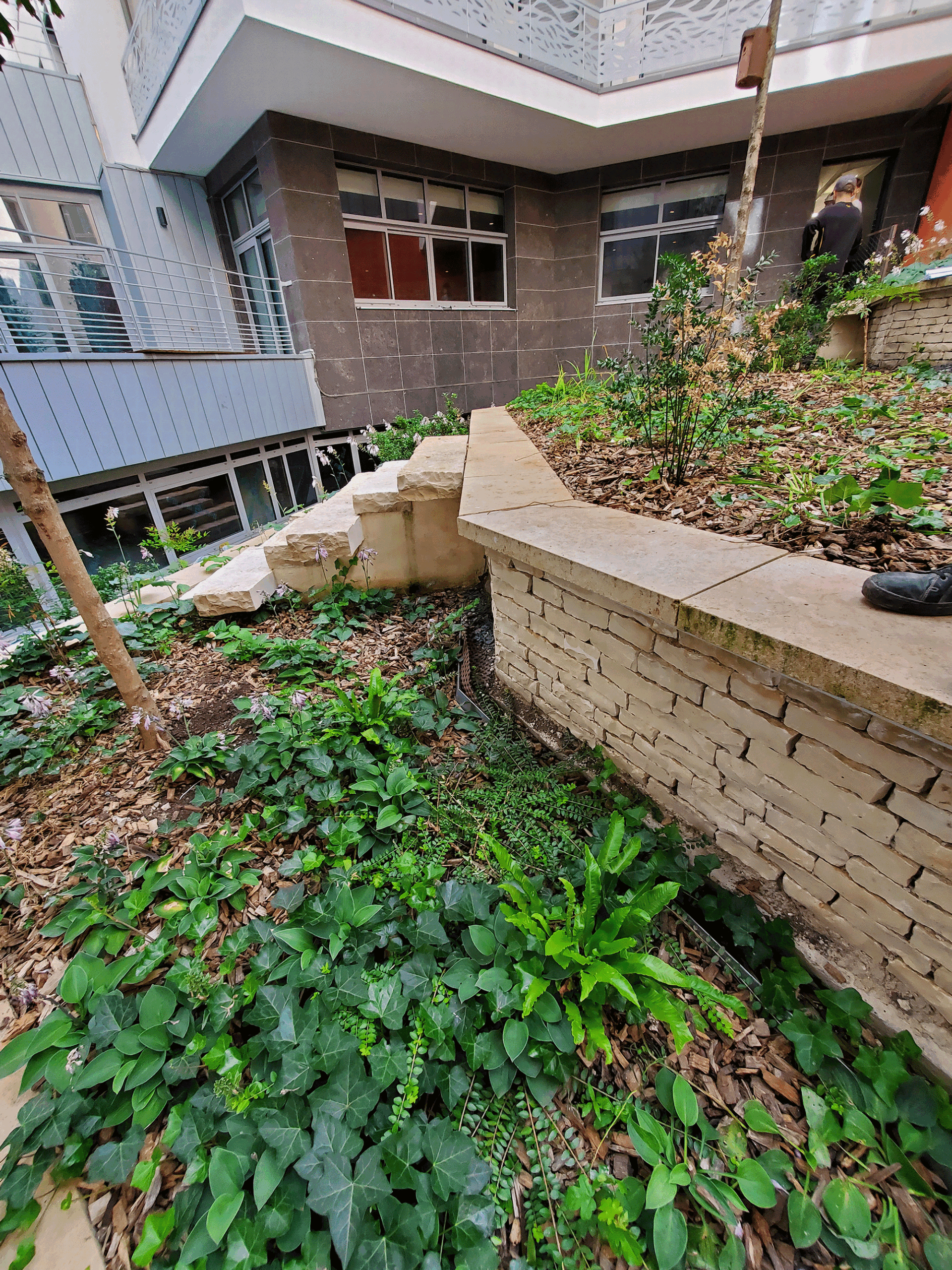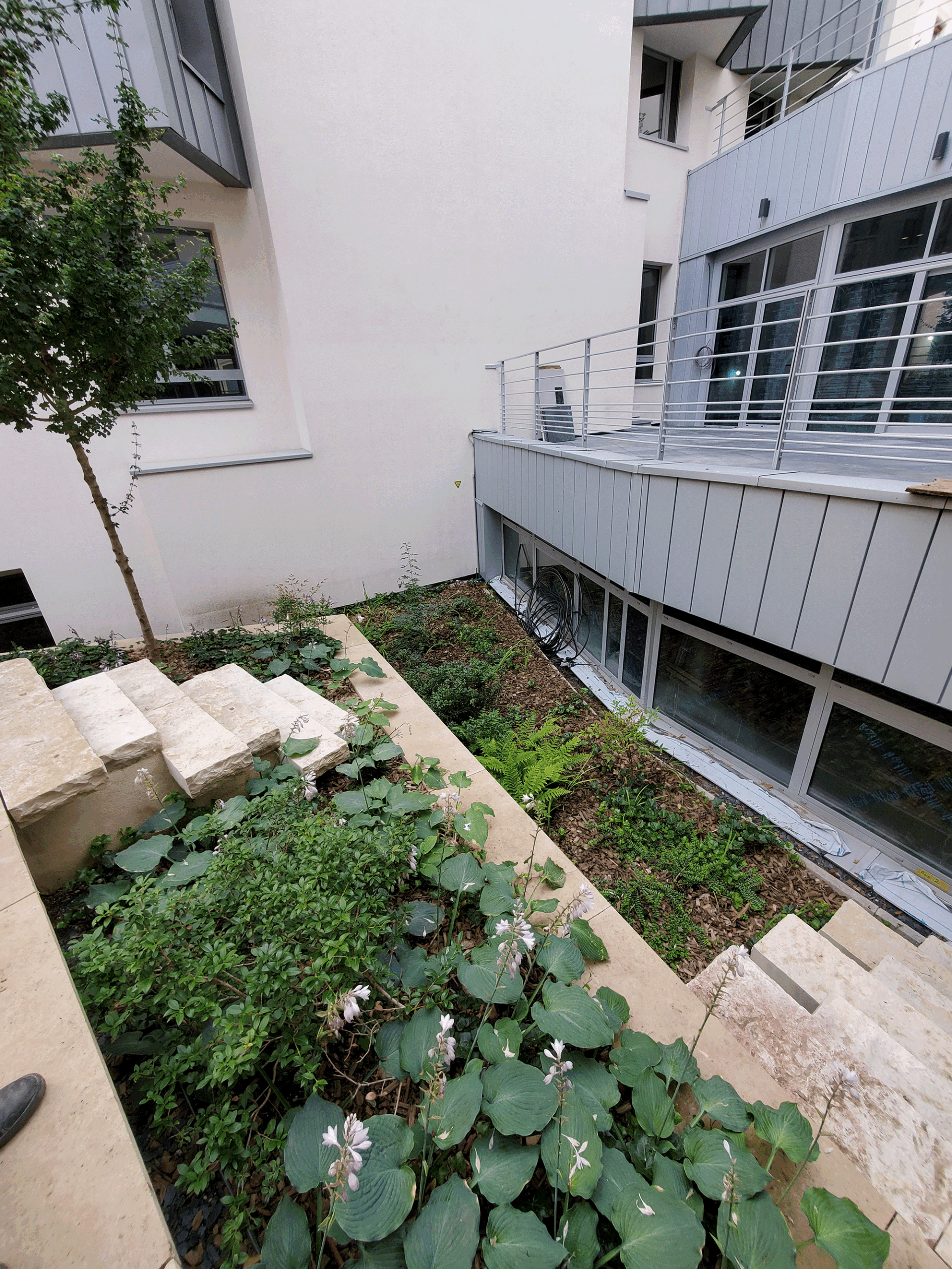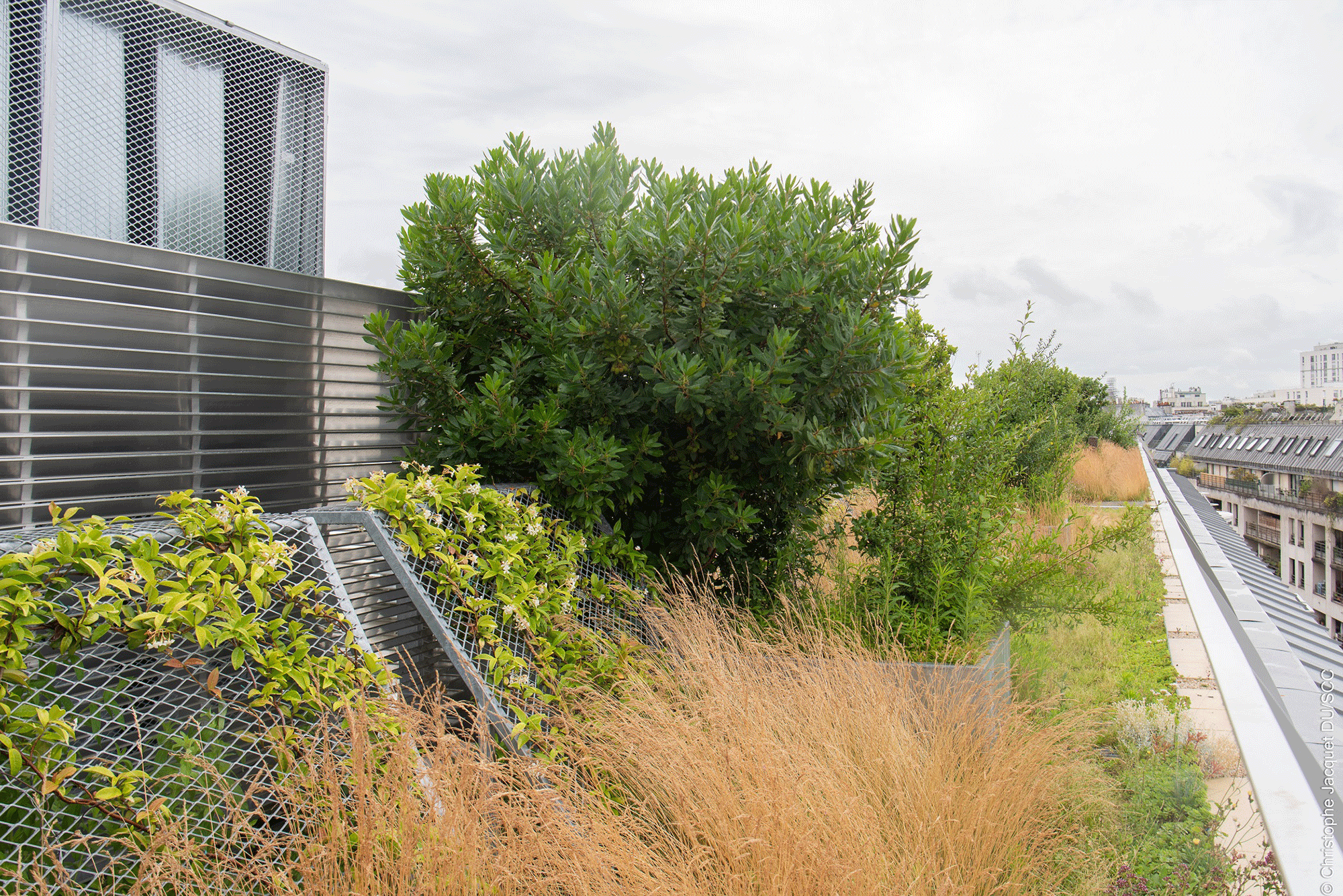 Toits terrasse Hôtel et logements – Le projet végétal se décline depuis le terrain naturel jusqu’aux toitures en développant un système de gradins qui permet d’étirer verticalement la trame végétale. Cette configuration offre aux riverains le spectacle d’une nature luxuriante et spectaculaire et s’inspire des jardins suspendus de Babylone.