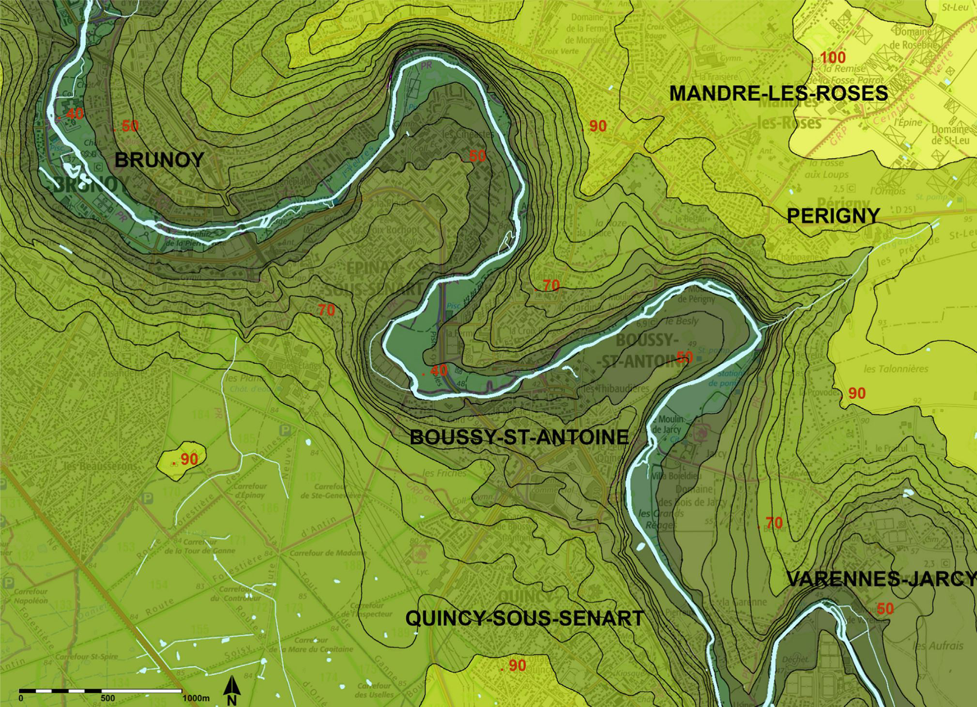 La rivière de l’Yerres constitue sur environ 38 kilomètres le trait d’union entre les treize villes en aval de la vallée d’Yerres. Elles sont situées en limite de deuxième couronne Sud de Paris. Le SIARV (Syndicat Intercommunal pour l’Assainissement de la Région de Villeneuve-Saint-Georges) soutenu par la communauté d’Agglomération du Val d’Yerres a entrepris la reconquête des berges de l’Yerres par la réalisation d’une promenade dotée d’espaces récréatifs ou naturels.