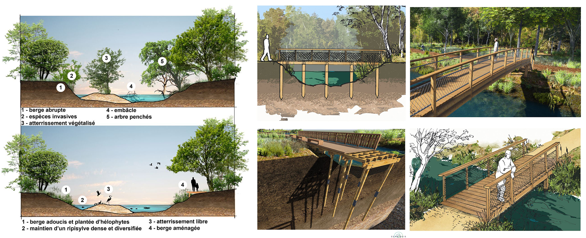 En corrélation avec l’étude environnementale de IEA, nous dégageons une marche à suivre pour allier biodiversité, paysage et usages. Nous définissons des actions pour la reconquête de milieux naturels dégradés, mais aussi l’équilibre de la biodiversité (faune-flore) et la pérennisation des berges et milieux humides.